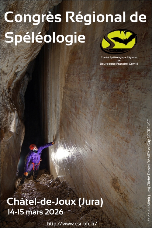 Le congrès régional de spéléologie de Bourgogne-Franche-Comté se déroulera à Châtel-de-Joux lors du week-end des 14 et 15 mars 2026.